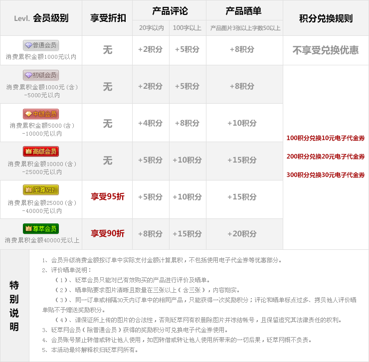 会员级别条件:在砭萃网注册购买产品累积金额40000元(含)以上的会员。