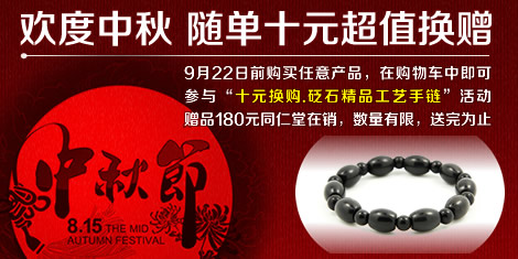 即日起至9月22日,在砭萃网购任意产品,且在购物车中加10元即可获赠“泗滨砭石精品工艺手链”一条(赔本冲量,你没看错是真的!)。砭石手链180元同仁堂正价在销,数量有限,送完为止。