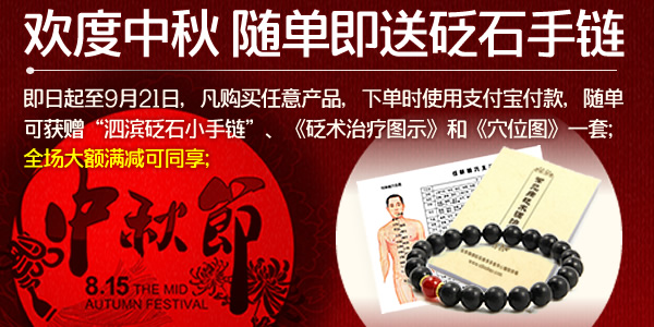 中秋节大促:全场购物大额满减,随单再送砭石手链
